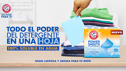 - Detergente ecológico: Arm & Hammer Power Sheets evita goteos, derrames y residuos de botellas de plástico. Práctico, ligero y reciclable, sin cargar botellas pesadas.