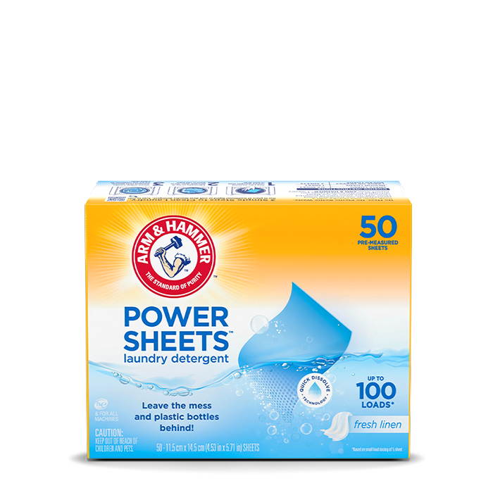 - Hojas rendidoras: 1 caja de 50 unidades de detergente para ropa Arm & Hammer Power Sheets, lava 50 cargas medianas (hasta 100 cargas pequeñas) cuando se utiliza bajo indicaciones.