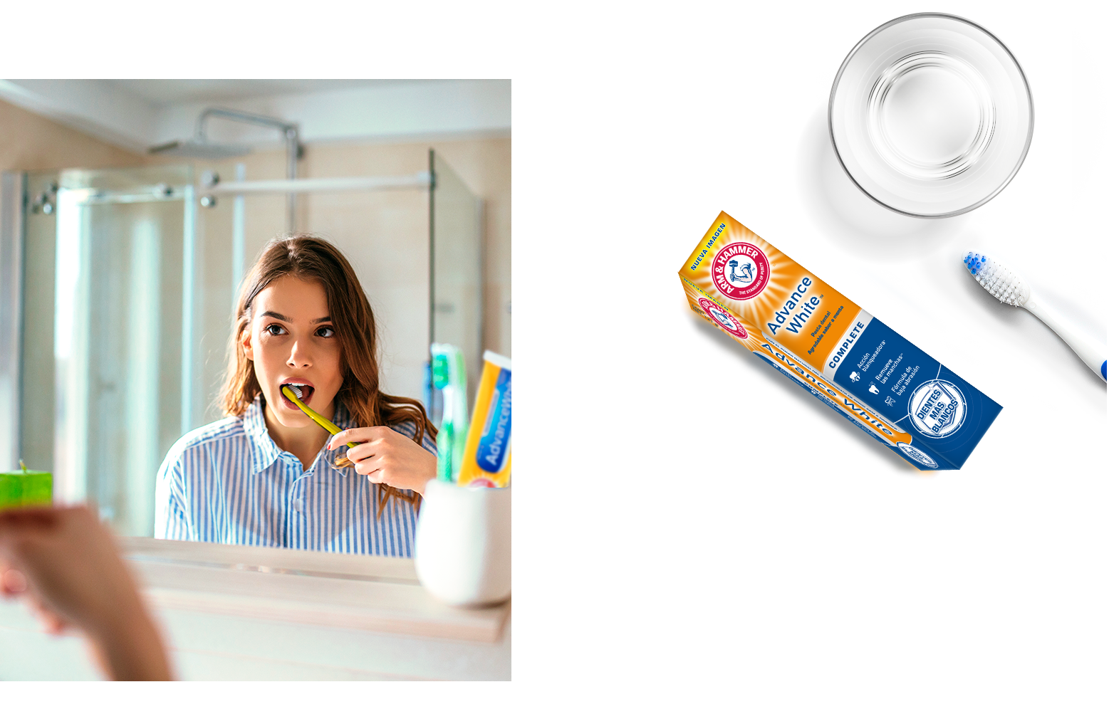 Aprovecha el poder natural del Bicarbonato de Sodio Arm & Hammer™ y la protección de nuestra fórmula de baja abrasión para lograr lo que quieras con una sonrisa saludable y hasta tres tonos más blanca*.
